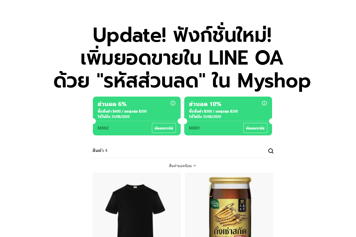 Update! ฟังก์ชั่นใหม่! เพิ่มยอดขายใน LINE OA ด้วย “รหัสส่วนลด” ใน Myshop